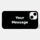 You can edit the white display text to a custom message such as a name on this black phone case.