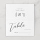 A minimal and simple table number place card for your wedding, featuring a modern script font with the word "table" and a blank line to fill in the table number and guest's name. Personalize the back of the card with the bride and groom's names, and the wedding date.