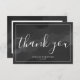This simple and elegant thank you card features a minimalist dark gray, almost black, watercolor design with white fonts. The front side showcases "Thank You" in stylish script calligraphy, along with the bride and groom's names and the wedding date. A thin white frame line adds a touch of sophistication to the design. On the back, there is a simple white rectangle where you can write a personal note or add a digital message, with the watercolor accent continuing around the border. All the colors, including the dark gray watercolor, can be changed, as the watercolor design sits on top of the colored background. This modern and understated thank you card works seamlessly with any wedding theme and is perfect for spring, summer, autumn, fall, winter, or any season. You can also change the font colors to suit your preferences. The chic, minimalist elegance of this thank you card ensures it complements a variety of wedding themes, adding a touch of class to your special day. Simple Stylish Elegant Black and White Watercolor Wedding Thank You Card.