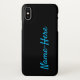 Simple Black Background w/ Deep Sky Blue Name iPhone Case