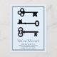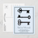 Simple Black Blue Minimal Key Moving Announcement Postcard