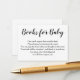 This simple black calligraphy book request insert is perfect for a rustic or modern baby shower. Include these book request cards with your baby shower invitations to ask guests to help build the baby's library. Your guests can write a message inside the book, instead of inside a card. A great way for the parents and new baby to remember the shower guests!