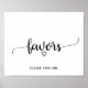 This simple black calligraphy favors poster is perfect for a rustic or modern theme wedding. The minimalist design features an elegant brush script font and a lovely feminine heart.