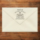 Elegant return address stamp featuring a modern, black Christian cross and open Bible, Pastor name, Church name, and your return address.