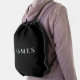 Simple Black Custom Add Your Name Elegant Drawstring Bag
