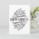 Thanksgiving greeting card with words "Happy Harvest" with hand drawn leaves. Add your own message to the back.