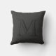 Simple Black Faux Leather Look Monogram Throw Pill Pillow