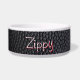 A faux black leather encircles this simple bowl with a simple minimalist look. It features your best friend's name in a white fun font, shaddowed with red. Just substitute your pet's name by clicking the "personalize" link.