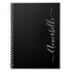 Simple and stylish, black notebook with personalized first name in script front. Please contact me for help with customization if required. Other colors and matching items available.