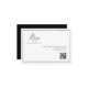 A QR code RSVP wedding card with simple black lettering, black frame and editable text.