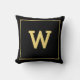 Simple Black Gold Initial Monogram Throw Pillow