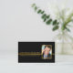 Photo design template in black and gold tone for you to personalize for your consulting or other professional services business. Simple and straightforward, simply exchange the photo for your photo and personalize the text on front and back for this two-sided design featuring a gold tone stripe and frame on a dramatic black background. Design by Holiday Hearts Designs (rights reserved).
