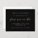 Simple Black Gold Script Wedding Save The Date. A convenient postcard to let guests know your wedding date. Elegant black and gold with an informal set script for Please Save Our Date. Easily personalise the rest of the text to your details.