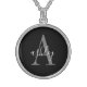 Simple Black Gray, Personalized Monogram Sterling Silver Necklace