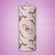 Add a touch of elegance to any setting with this beautifully crafted pillar candle, adorned with a delicate pattern of simple black hearts, floral motifs, and infinity symbols on a sophisticated pink background. Perfect for weddings, romantic dinners, or cozy evenings at home, this candle creates a warm and inviting atmosphere. Made from high-quality wax, it promises a long-lasting and clean burn, making it a lovely decorative piece as well as a functional one. This charming pillar candle is a perfect blend of style and sentiment, making it a wonderful addition to any decor.