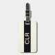 Travel in style with a luggage tag for you to personalize with initials or name on the front in a modern ivory sans serif typeface on a black stripe on an ivory background. The reverse is a black background with a place to add your name, address, phone and email. Just delete the lines you don't want or add in others of your preference. Click customize further to change the colors or font.