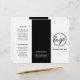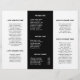 Professional and modern trifold brochure with a simple yet elegant design in black and white. The front panel has your logo and business name. The back panel has your contact information and the inner fold panel has two headers and text boxes. Use the template to add information about your business on the outer panels and a price list / service menu in the middle panel. DESIGN TIP: You may change the text and background to any color you wish by clicking the "customize" button.