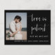 This wedding elopement announcement invitation postcard features an elegant calligraphy and simple sans serif typography font with a photo on a black background for a clean minimalist and modern look, which is a beautiful way to inform about your upcoming wedding. The simplicity of this design adds a touch of elegance to your wedding announcement cards. It works well with many wedding themes and definitely a great addition to your wedding. Just customize the names and wording in a few easy steps and personalize the invitation postcard with your photo of the happy couple to give your postcard a nice personal touch.