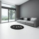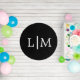 Simple area rug featuring a modern yet elegant design with your two letter monogram in white over a black background.