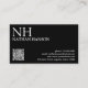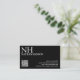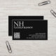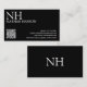 Modern QR Code business cards featuring a simple and minimal black design with your monogram in a bold font along with your name in the upper left corner. Your contact info is in the lower right corner.