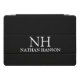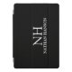 Modern ipad cover featuring a simple and minimal black design with your monogram in a bold font along with your name.