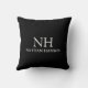 Modern business throw pillow featuring a simple and minimal black design with your monogram in a bold font along with your name.
