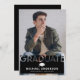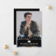 Trendy black graduation announcement card featuring a picture of the graduate, a motarboard, and a modern text template that is easy to personalize.