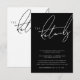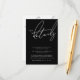 Minimalist Black and White Script Typography Wedding Details Cards - Classic Elegance in a Dark Aesthetic. Elevate your wedding announcement with our modern black-and-white script typography details cards, a timeless choice for your special day. These details cards seamlessly combine classic and elegant design elements with a dark aesthetic, creating a striking contrast that sets a formal and sophisticated tone. The simplicity of the black-and-white color scheme and the elegance of the white typography make these detail cards a perfect choice for couples seeking a simple yet impactful statement. Choose this invitation to let your love shine in a classic and modern fusion