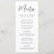 Simple wedding menu featuring "Menu" displayed in a black script with a white background. Personalize the black and white wedding menu by adding your names, wedding date, and menu information. Designed to coordinate with our Simple Script wedding collection.