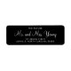 Modern wedding return address labels featuring a simple design with the words, "The Future Mr. and Mrs." along with your name in an elegant white script font and two lines of text for your return address in a sans serif font, over a black background. These minimalist and chic return address labels are a great way to add a personal touch to your envelopes.