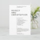 Simple minimalist wedding ceremony program stripped of extraneous ornamentation and prioritizing functionality, balance and harmony. The design highlights the couple’s names as a focal point in a large isolated text block, shifting the margin for the remaining details. Clean minimalist typography. Back of card includes the bridal party and a simple memoriam details in white text on a colored background. Available in a curated selection of rich modern colors. Design is easily customized and personalized. Please reach out with any comments or for assistance to meet your individual need. Always happy to help! Note: Leave any text areas blank to remove or use the design tool for more specific, elaborate customizations.