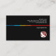 Design features an elegant black as a background cover. There is an accentuating tab above the midsection of the card consisting of five colorful colors. This colorful tab plays host to your name and job title. Right below are three light grey buttons that have your contact details. Towards the bottom corner is your logo option. The same design theme moves over to the back where you will find your business details above the colorful tab. Right below it, is your slogan-tagline option for you to personalize your card. You have another optional logo at the same location. If you so wish to download your photo, the dimensions are 1,000 x 1,000 pix. This is a simple great card for everyone to use. Elegant, striking yet bold and modern.