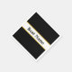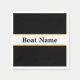 A black stripe is at the top and bottom. In the middle, there's a white stripe with black display text. You can edit the text to show your boat's name or a custom message. The faux gold stripes are not made of foil.