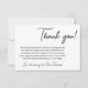 Clean thank you for your sympathy card featuring a simple design with Thank you in a signature script and a printed thank you message without photo. Flat thank you card without photo with simple black text against a white background and no photo.