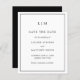 Simple budget save the date featuring a modern yet elegant design with your two letter monogram at the top and your wedding details surrounded by a thin border. All design elements are in black and white and may be changed in the design editing tool. A chic and stylish design that is great for a minimalist couple.