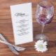 This simple black and white calligraphy dinner and drink menu brings an elegant luxury but modern feel to both a minimalist and more traditional or formal wedding reception. The casual calligraphy allows for an antique feel, while the classy neutral design can be combined with any unique aspects of your marriage celebration.