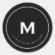 Simple Black White Classic Monogram Round Sticker