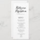 Beautiful Typography Wedding menus you can customize. Simple Black White Elegant Script Wedding Menu. Design by Elke Clarke © Available at www.zazzle.com/monogramgallery. Add all your personal information to create a simple yet sophisticated menu you can add to your table settings at the wedding reception dinner.