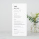 Let your food speak for itself with this elegant black and white wedding dinner menu card. This minimalist design features clean lines and a classic font, putting the focus on your culinary selections. The black and white color scheme ensures it will complement any table setting, making it a versatile choice for your modern wedding reception.