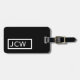 Elegant customizable black luggage tag with white frame and bold monogram.