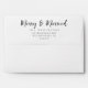 a modern minimalist simple black and white Merry Christmas holiday envelope. Which features a plain white color with black calligraphy script typography of Merry and married . Along with the customizable return address.