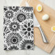 Simple Black White Retro 70s Graphic Daisy Pattern Kitchen Towel