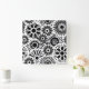 Simple Black White Retro 70s Graphic Daisy Pattern Square Wall Clock