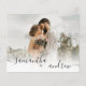 Simple black and white script wedding with 5 photo grid collage horizontal layout, affordable budget wedding .