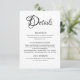 Keep your guests informed in style with this minimalist wedding details card, featuring a modern black-and-white design. Set on a crisp white background with clean black typography, this versatile card is perfect for elegant, classic, or contemporary weddings. Ideal for sharing accommodation info, directions, or your wedding website, the simple layout ensures readability while maintaining a sleek and sophisticated look. Easily customizable to suit your unique celebration.