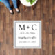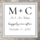 A simple yet elegant black and white design with a wedding monogram—date—happily ever after. It's perfect for decorating the center of the dance floor or anywhere at your wedding reception. The black double frame around the couple's initials adds a special touch.