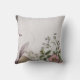 Modern throw pillow features a simple minimalistic blooming floral design in a creamy ivory color palette with pink and green accents with hints of gold. A stylish botanical print comprised of blooming garden flowers framed by stylish amaryllis with faint gold design elements; the layered composition gives depth and perspective to the overall design.
