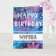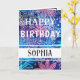 Simple Blue and Pink Print Happy Birthday Card