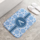 Simple Blue and White Modern Geometric Monogram Bath Mat