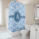 Simple Blue and White Modern Geometric Monogram Shower Curtain